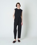 接触冷感、UVカット、ストレッチ性を兼ね備えたナイロンワッシャー素材のノースリーブブラウス。 汗をかく季節に快適なドライタッチと表情のある素材感が涼しげな印象。 肩先にかかる幅広のノースリーブブラウスは1枚で着こなすのはもちろん、ジャケットなどのインナーとしても活躍します。 同素材のナイロンストレッチテーパードパンツと組み合わせてセットアップで楽しむのもおすすめです。