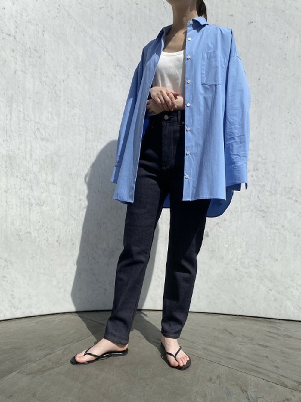 上半身が華奢に見えるワイドシルエットのシャツ。 素材はひんやりとした肌触りが特徴で夏でも涼しく着こなせます。 また、透けにくい素材で1枚でさらりと着こなせます。
