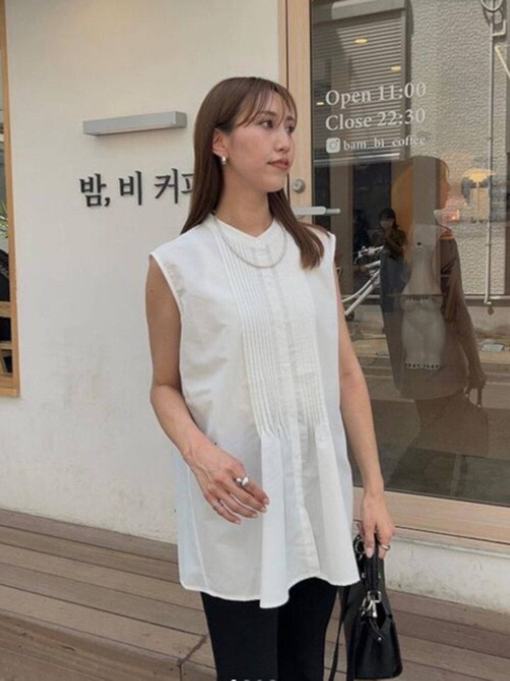CROSSPLUS(CROSSPLUS ONLINEメイン)のシャツ/ブラウス「ピンタックノースリーブブラウス」を使ったコーディネート