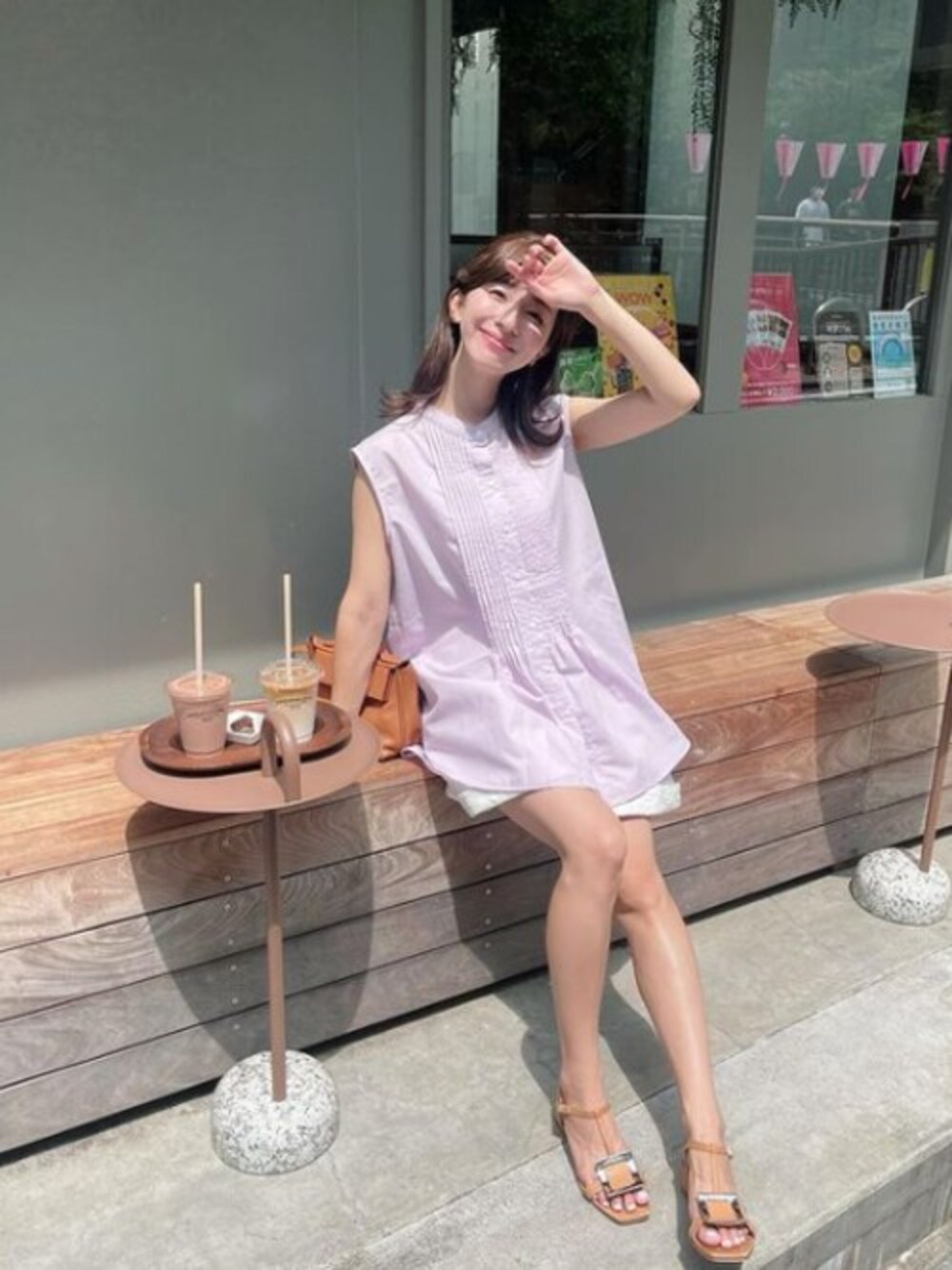 CROSSPLUS(CROSSPLUS ONLINEメイン)のシャツ/ブラウス「ピンタックノースリーブブラウス」を使ったコーディネート