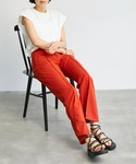 赤のパンツが目を引く、気分も上がるコーデ◎