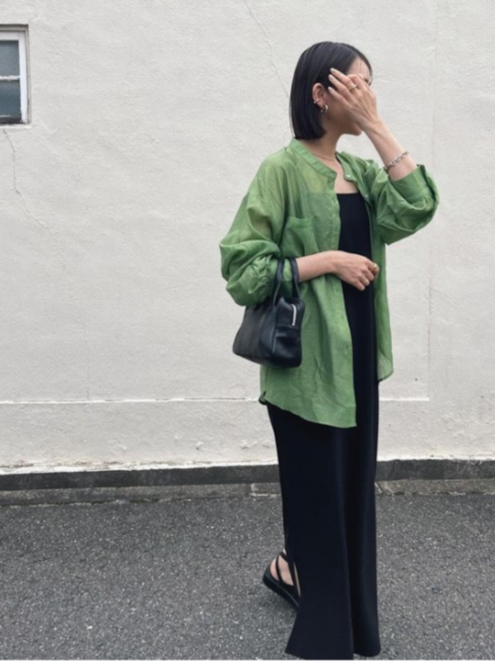 CROSSPLUS(CROSSPLUS ONLINEメイン)のシャツ/ブラウス「バンドカラーシースルーシャツ」を使ったコーディネート