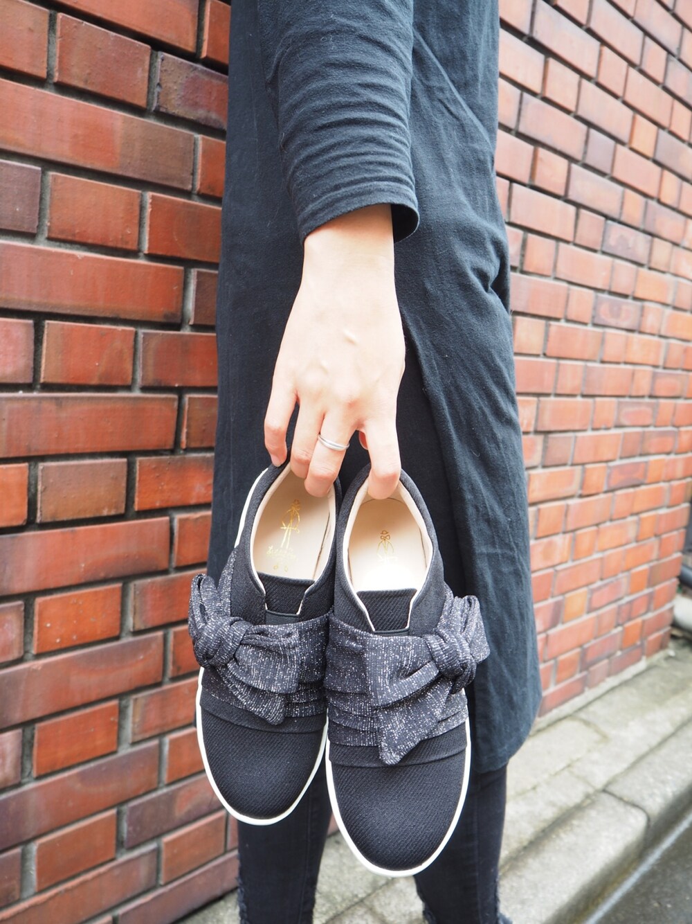 ササッと履けて楽ちんなリボンスニーカー オールブラックだけど、足元にアクセント🎀