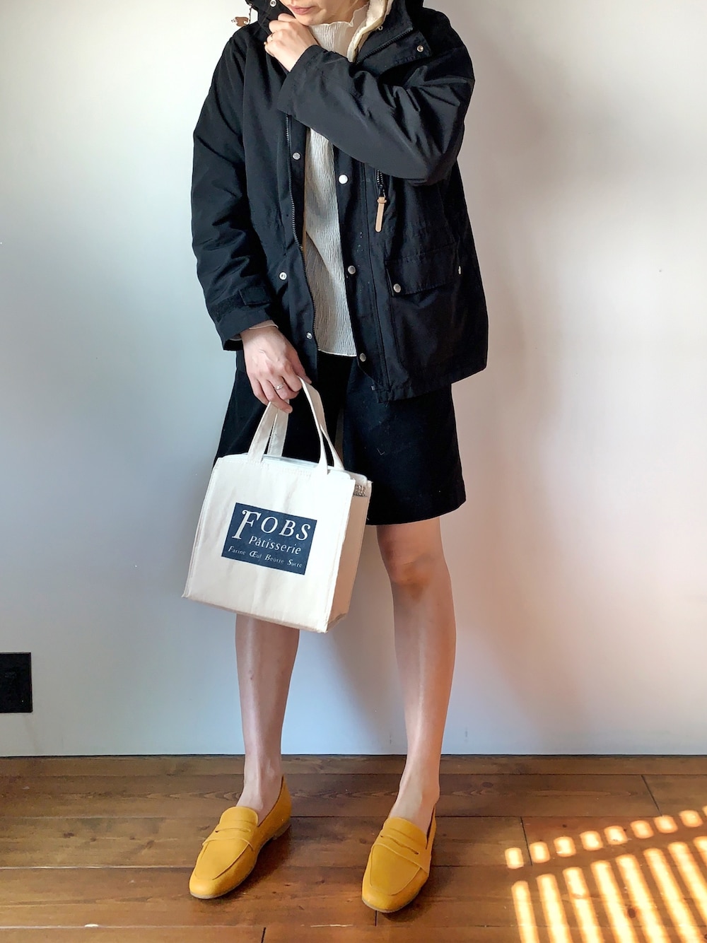 暑い日💦 全身がほぼブラックコーデなのでマスタードイエローが映える💓💓💓💓