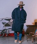 ひと際目立つ大きなポーチをアシンメトリーに配置したワイドミリタリーコートは収納力も抜群、ラフな感じで外出するならポーチに全て収まるのでカバン入らずで、見た目もクールです。カラーはライトカーキとコチラのネイビーですが、ネイビーはかなり濃いので黒に近いです。