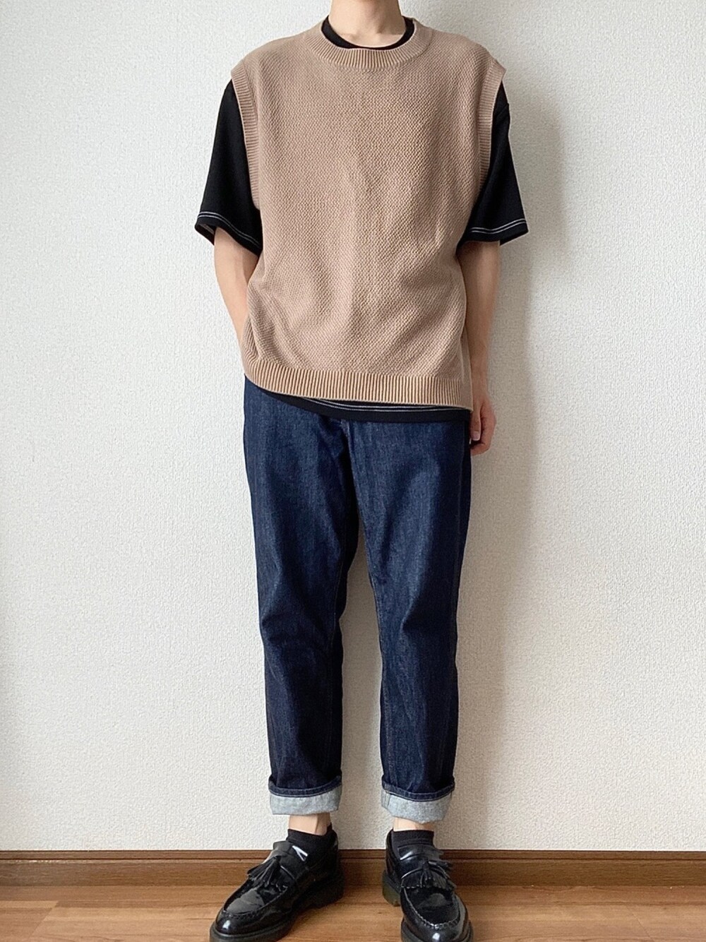 見てくださってありがとうございます! 本日はベスト×Tシャツコーデにしました! ベージュのベストとネイビーのデニムの組み合わせが個人的には好きです! よかったら、フォロー、いいね!、お気に入り よろしくお願いします!