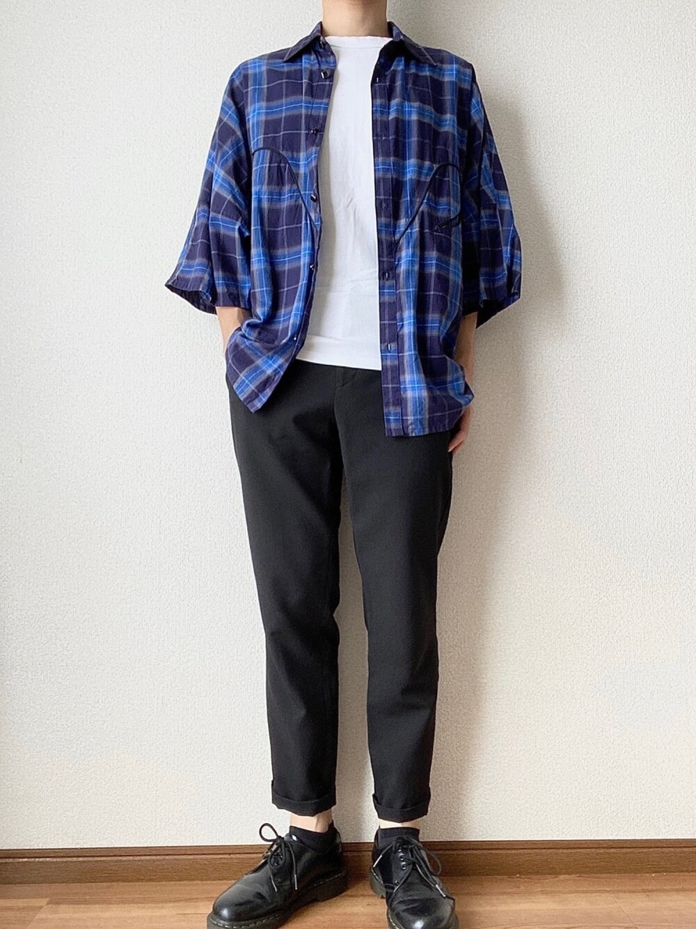 見てくださってありがとうございます! 青×白×黒のシンプルコーデです! トップスのシャツはだいぶ前にHAREで購入したものです! よかったら、フォロー、いいね!、お気に入り よろしくお願いします!