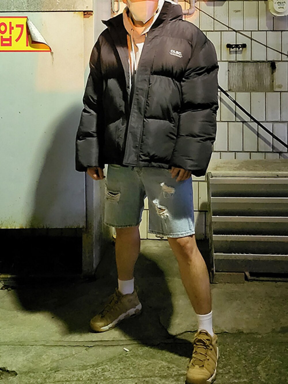 ブラック系のダウンジャケット/コートを着用したメンズの冬コーディネートの1枚目の写真