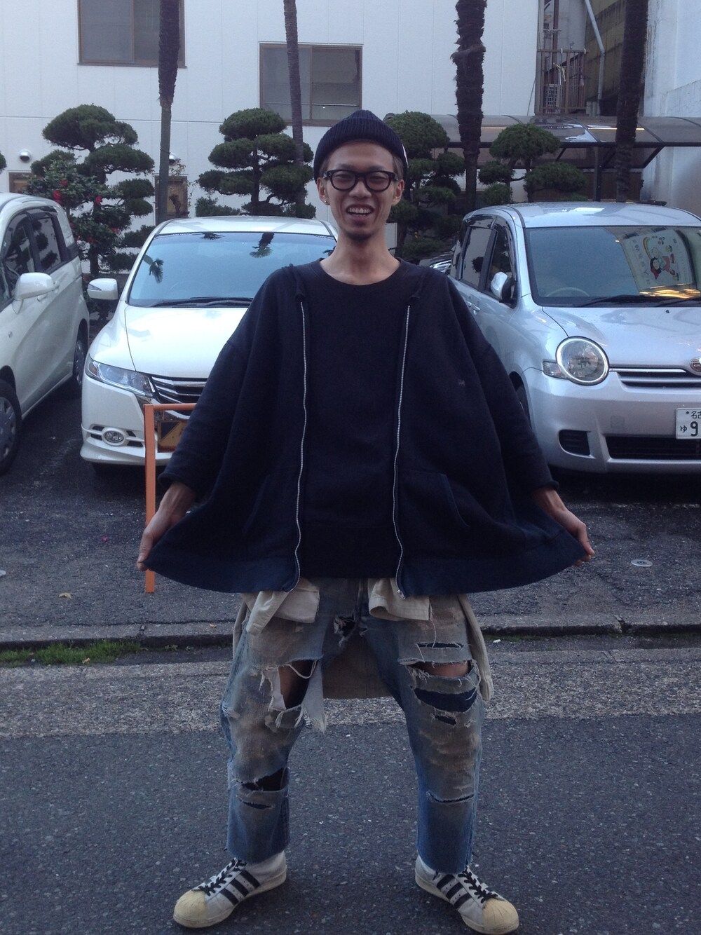 アホ面ですみません。 昨日まで暖かかったので調子乗ってボロデニム穿いて出たらくそ寒かったです。 リペアにリペアを重ねたナイスデニム!! 裾はぶった切りました(笑) 本日はチョコを食べながらの投稿です。 うまい トップス:サスクワッチファブリック アウター:90s stussy パンツ:Levi's "66後期" スニーカー:80s adidas "PROMODEL"