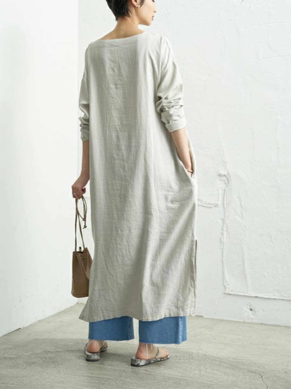 craftstandardboutique_officialのワンピース「【2020SS】リネン混ガゼット付きボートネックワンピース」を使ったコーディネート