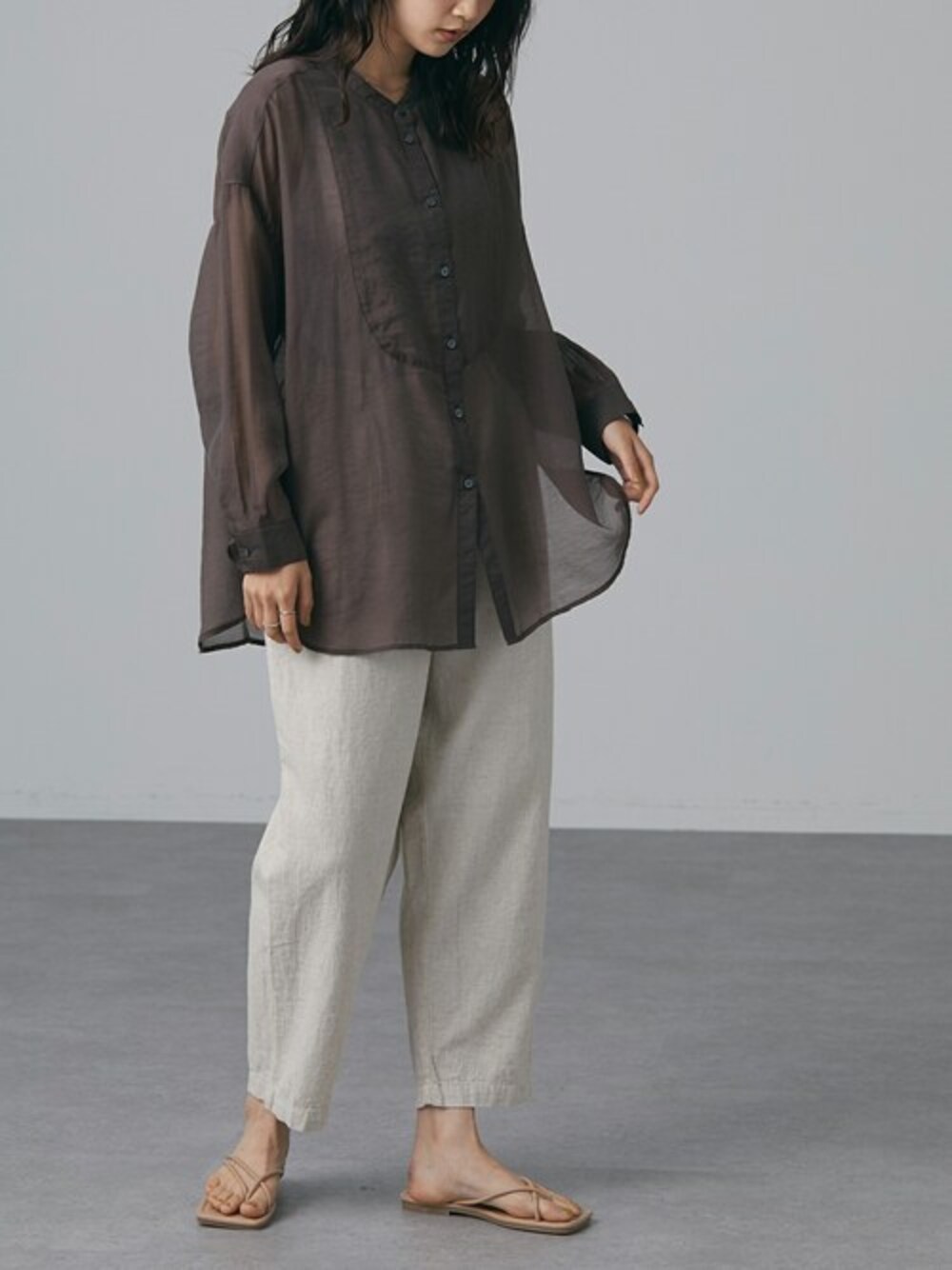 Online Store(CRAFT STANDARD BOUTIQUE)のシャツ/ブラウス「バンドカラーシアーシャツ *」を使ったコーディネート