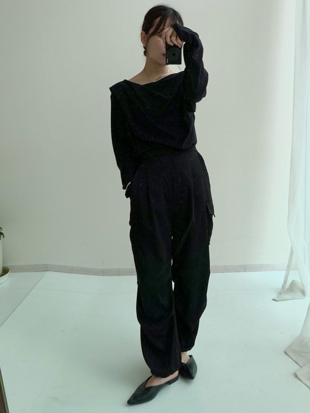 オールブラックでも女性らしくがテーマ トレンドのカシュクールトップスは ほどよい肌見せが大人っぽい♡ サテンのカーゴパンツがカジュアルな分 トップスは女性らしいものをチョイスすると カジュアルになりすぎないコーデに。 ------------------------------ 身長:158cm 骨格:ナチュラル Instagram:@_157018pi_ ------------------------------