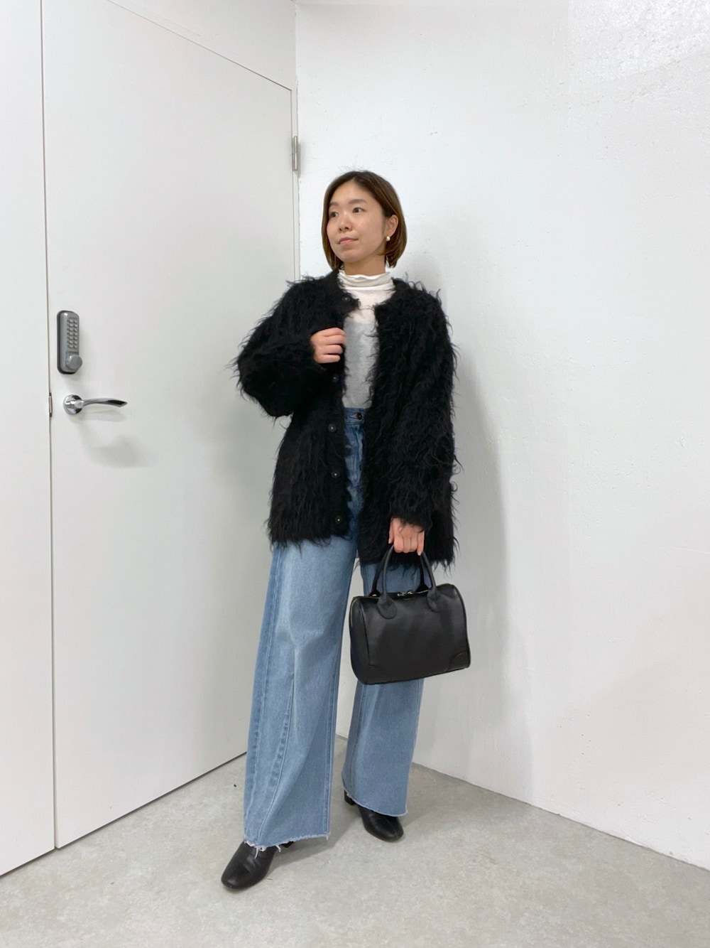 アウター感覚で着られる起毛カーディガン♫ サラッと羽織るだけでおしゃれスタイリングに☆ シアー素材のトップスを合わせると抜け感が出ます。 カジュアルになり過ぎないおすすめデニムコーデです!