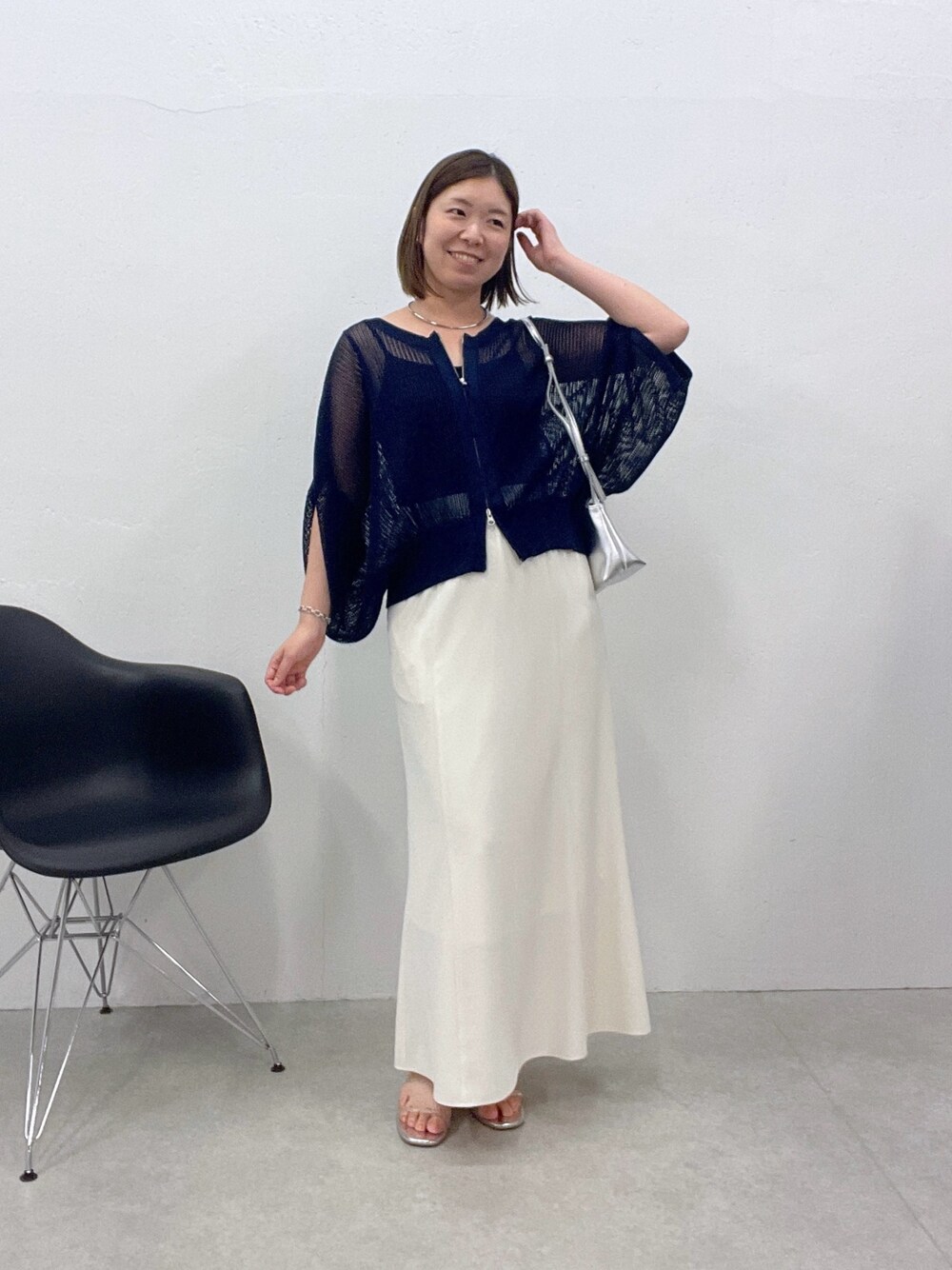 メッシュ素材の新作トップス★ 袖がドルマンスリーブだから 二の腕も隠せて体型カバーも出来ちゃいます♪ 私はファスナーを前にして着てますが、 実は前後2way仕様! スタイリングに合わせて お好みの着方をして頂けます。 メッシュ素材なので夏に着ても涼しい◎ 素材の風合いでこの1枚で おしゃれな印象に見えます! サラサラ素材のジャージシリーズ “ジャージマーメイドスカート”を 合わせてもバランス良く コーディネートが決まります。