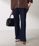シックなカラー合わせのデニムコーデ★ ・トップス まだまだ大活躍! サッカー素材で涼しく着られて 体型カバーもしっかりできるブラウス。 二の腕も隠せて、 ウエスト・ヒップもしっかりカバー。 胸下あたりからタックが入る事で 着るだけでサマに着映えデザイン♪ とにかく暑くて涼しい格好がしたい方に おすすめのトップスです! ・デニム 人気のセルフカットデニムに新色登場! 引き締め効果があるインディゴブルー★ きちんと見えするので、フォーマルまではいかないけどあまりカジュアル過ぎる格好は出来ない…というシーンに使えるカラー。 ストレッチが効いていて伸縮性抜群なので動きやすく、 あらゆる贅肉のホールド力もあり◎ 履くだけでマイナス3kg見えするデニムです!
