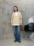 エアリー深Vネックニットを レイヤードコーデしてみました! デニムのカジュアルコーデの時には レイヤードをしてあげると、 こなれ感のあるスタイリングに。 長めのロンTをインナーに選ぶことで 身体の太い部分をカバーして 脚の細い部分が強調される 着痩せコーデに仕上がります◎ セルフカットデニムはサイズ1を 着用しています。 カットをせずに履いていて 低めのヒールだと少し長いくらいの丈感です。