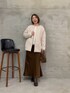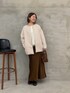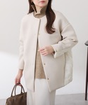 ヒップあたりまで隠せるミドル丈で ロングスカートと合わせた時も 着膨れる感じはなく、 バランスよくスタイリングが出来ます。 前から見るとシンプルな見た目ですが 背面はキルティング素材になっていることで 抜け感もプラスされ 羽織るだけでおしゃれ見えするアウターです。 柔らかい印象で着られるベージュは スカートと合わせてきれいめコーデにもぴったり◎ 淡い色ですが、異素材で切り替えになっていることで 膨張せずスッキリ見えします。