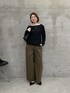 ブラックのシアートップスの中には レーストップスを重ねて 女性らしさと抜け感の出るコーデにしてみました! カーキのチノパンツを合わせることで ぱきっと引き締まる印象に。 トップスがコンパクトなシルエットなので ワイドなボトムを合わせることで スタイリングにメリハリが出ます◎ チノパンツはウエスト部分にタックが入っていて 背面はゴムが入っているので ウエスト周りは苦しくなく穿けています!