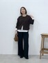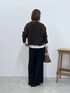 スタイリングに今っぽさが プラスされるブラウンニットを 黒スラックスと合わせたレイヤードコーデ。 インナーの白を入れることで ダークトーンの組み合わせにもメリハリが生まれて スッキリ見えします。 ボトムは穿いた時に落ち感が出る ジャージワイドパンツの“サイズ2”を着用。 ゆったり穿けて程よくボリュームが出るので こなれ感のあるスタイリングに仕上がります。