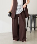 ノーカラーで シャツ感覚でさらりと羽織りやすい ジャージ素材のジャケットに レースアイテムをプラスした キレイめコーデ★ ブラウンのパンツを合わせる事で ベージュのジャケットとカラーバランス◎ 上半身はスッキリとしたラインで 抜け感が出るようにして、 ボトムにボリュームがあるものを 持ってくる事で メリハリのあるコーデに。 パンツはサイズ1を着用しています。 ウエストに3タック入っているので 窮屈さなく体型カバーもバッチリです!