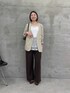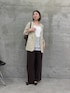 ノーカラーで シャツ感覚でさらりと羽織りやすい ジャージ素材のジャケットに レースアイテムをプラスした キレイめコーデ★ ブラウンのパンツを合わせる事で ベージュのジャケットとカラーバランス◎ 上半身はスッキリとしたラインで 抜け感が出るようにして、 ボトムにボリュームがあるものを 持ってくる事で メリハリのあるコーデに。 パンツはサイズ1を着用しています。 ウエストに3タック入っているので 窮屈さなく体型カバーもバッチリです!