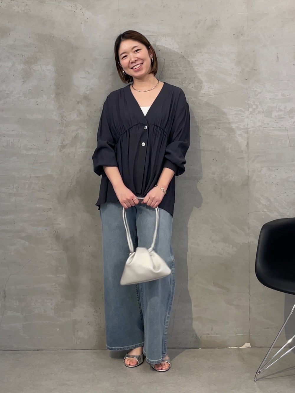 胸下の切替デザインがポイントの シャツカーディガンをデニムに合わせて コーディネートしてみました★ 切替部分からふんわり裾に向かって 広がるシルエットで 体型カバーをしながらも スッキリ見えるスタイリングに仕上がります◎ 切替部分にはゴムが入っているので 窮屈感なく着れました! 合わせたデニムは リラックススーパーワイドデニムの サイズ2を穿いています。 ワイドだけどボリュームが出過ぎないので 少し丈が長めのこのトップスとも バランス良くコーディネート出来ちゃいます! 脚のラインをキレイに 見せてくれるデニムなので 着痩せ効果も抜群です!