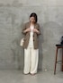 暖かくなると白のアイテムが やたらと着たくなる… 白パンツに濃い色味の シアージャケットを合わせて メリハリのあるコーデにしてみました! ・ジャケット シアー素材で程よい抜け感を出してくれる ジャケットです。 お仕事の日にも良いですが オフの日におしゃれして お出かけしたい時にピッタリ! 軽い着心地なので 気軽に羽織りやすいジャケットです。 キャミ1枚の上に着るのには 勇気がいるのでレースキャミの上に 着てみました◎ レースアイテムをプラスするだけで トレンド感がプラスできます! ・パンツ ジャージワイドパンツ オフホワイトを着用しています! 白だけど裏地付きなので 透けの心配もなし◎ サラサラ素材で落ち感もあるから 脚のラインが響きにくいです。 サンプルの都合上 サイズ1を着用していますが 私の体型ではサイズ2だと ゆとりを持って履けます。 サイズ1も履けなくないですが お腹周りがギリギリです笑