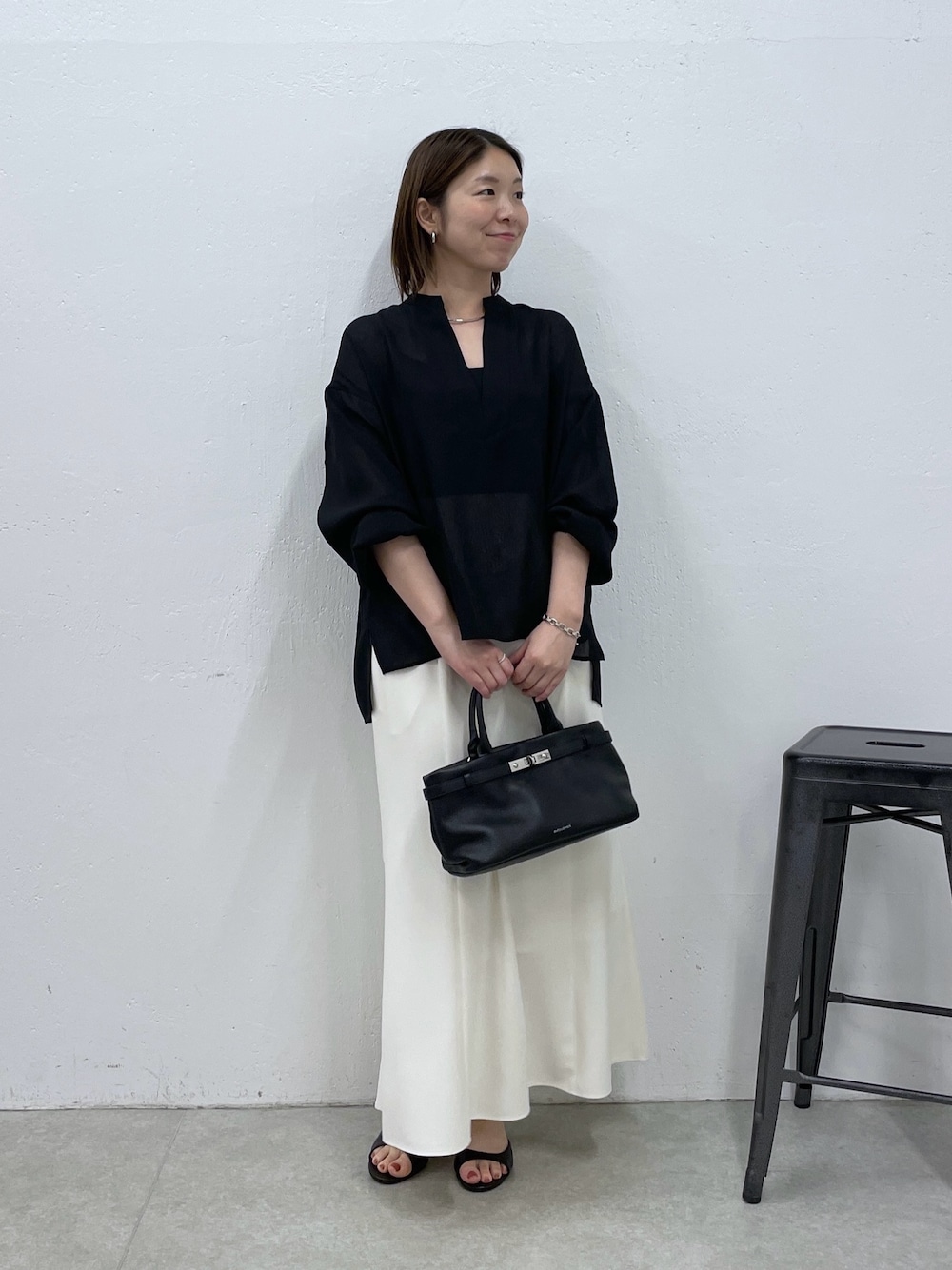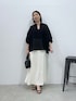 メッシュ素材で 夏にも着られる長袖ブラウスに マーメイドシルエットのスカートを合わせて モノトーンコーデ★ ・トップス 黒なので着るだけで着痩せ効果抜群! 首元がスキッパーデザインなので 顔周りがスッキリ見えします◎ ゆったりサイズですが 素材が柔らかいので 身体が大きく見えません! 前後差のある丈の長さでインしなくても バランス良くコーデが組めます。 ・スカート ジャージマーメイドの フリーサイズを着用しています。 フレアに広がりすぎないシルエットなので インしないコーデをしても問題なしです。 ウエストが総ゴムなので 穿き心地が抜群な上、 細見え効果抜群のスカートです。 オフホワイトは裏地付きになっているので 透けの心配もありません!