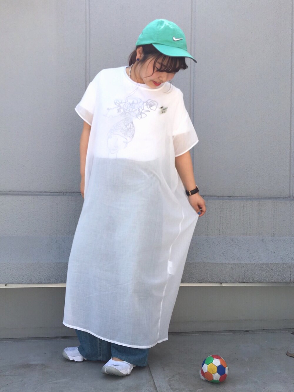 ドレスコードTシャツの日👕 沖ティーにしました。シースルーワンピの中に👗♡
