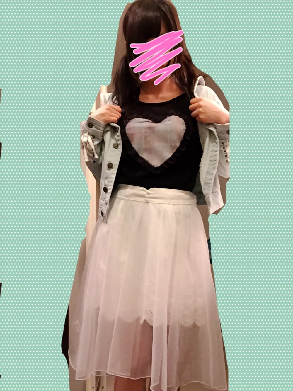 定番の白のチュールスカート(^-^) 黒いトップスが〆色! ハートの柄がよく見えないけどゆめかわ