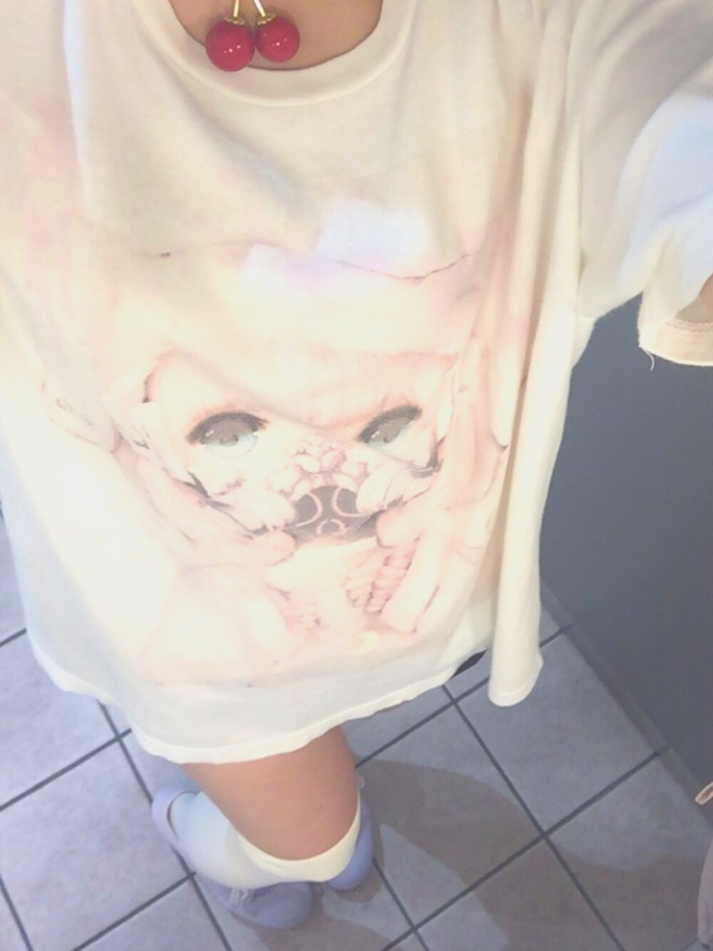 お気に入りのどけざちゃんTシャツと白ニーハイでゆめかわコーデです♡
