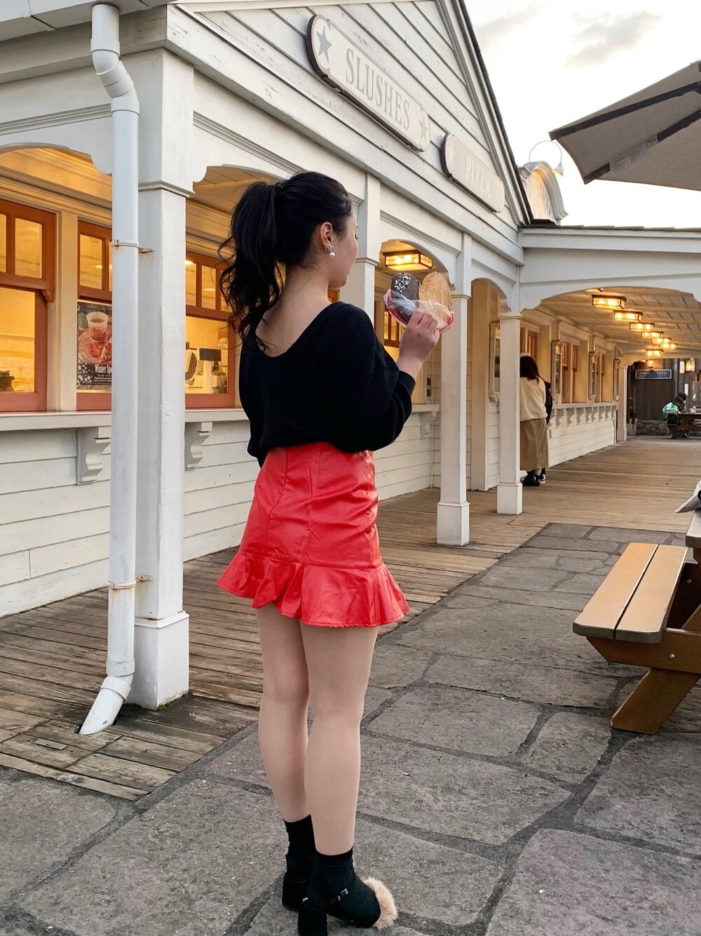 クリスマスユニバコーデ✔︎ 赤いスカート探してたら形も素材もタイプな物を発見できました🤭