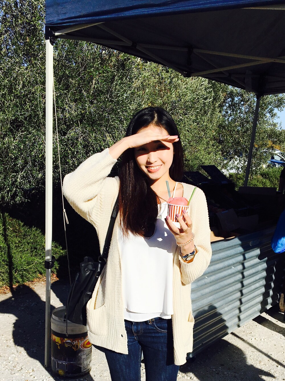 Knit outer coat for some warmth in the Australian cold, over a simple cami and jeans combo oozes comfort and style all wrapped in one.