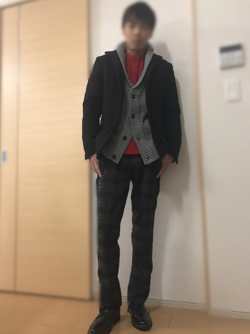 赤ニットにグレーカーディガンを着てみました。 Wニットじゃん(p_-) だって寒いんだもん! こんな人いないよね〜