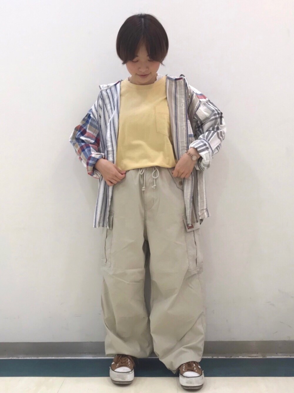 SHOP STAFFのシャツ/ブラウス「空紡糸 先染め チェック ストライプ パーカーシャツ」を使ったコーディネート