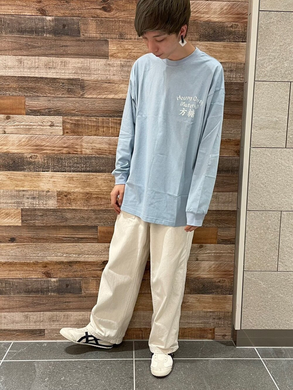 SHOP STAFFのTシャツ/カットソー「OE天竺 チャイニーズ ロゴプリント 長袖Tシャツ」を使ったコーディネート