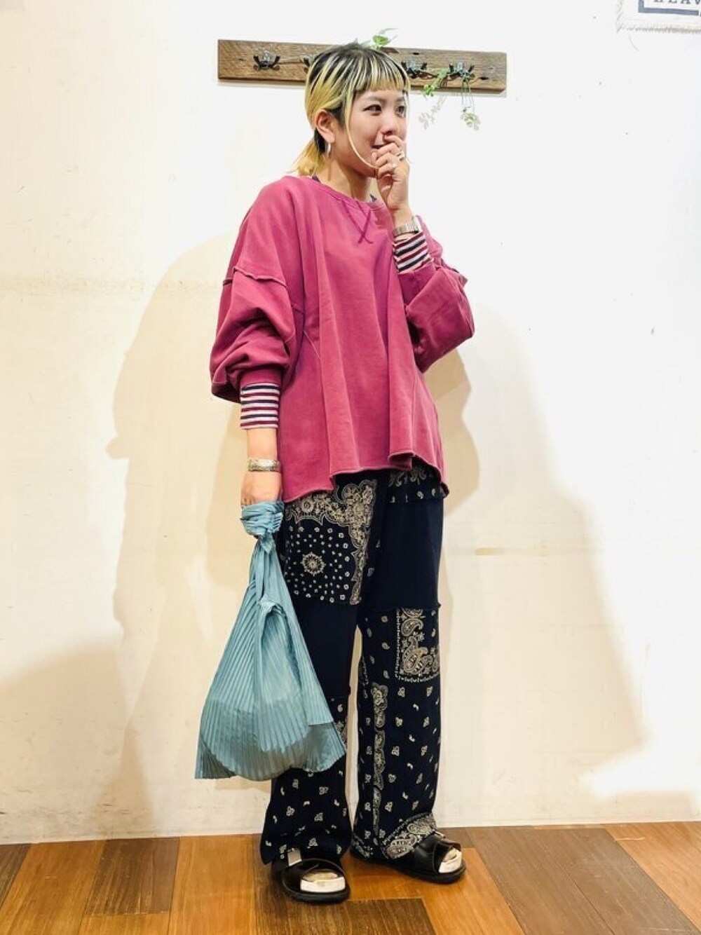 SHOP STAFFのスウェットパンツ「裏毛 スウェット バンダナ柄 切替 パンツ」を使ったコーディネート