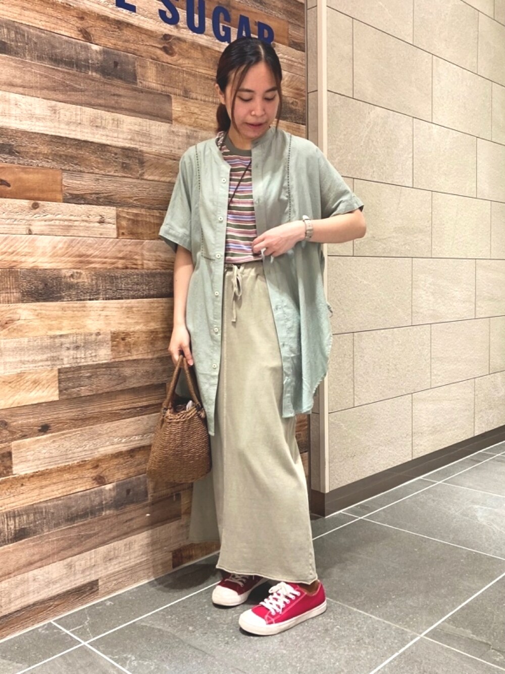 SHOP STAFFのシャツ/ブラウス「シャドーストライプ5分袖チュニック刺繍シャツ」を使ったコーディネート