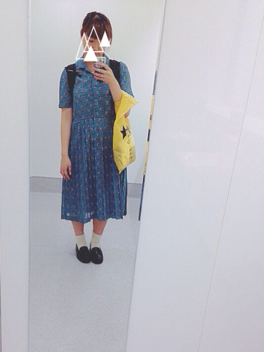 ブルー系のワンピースを着用したレディースの夏コーディネートの1枚目の写真