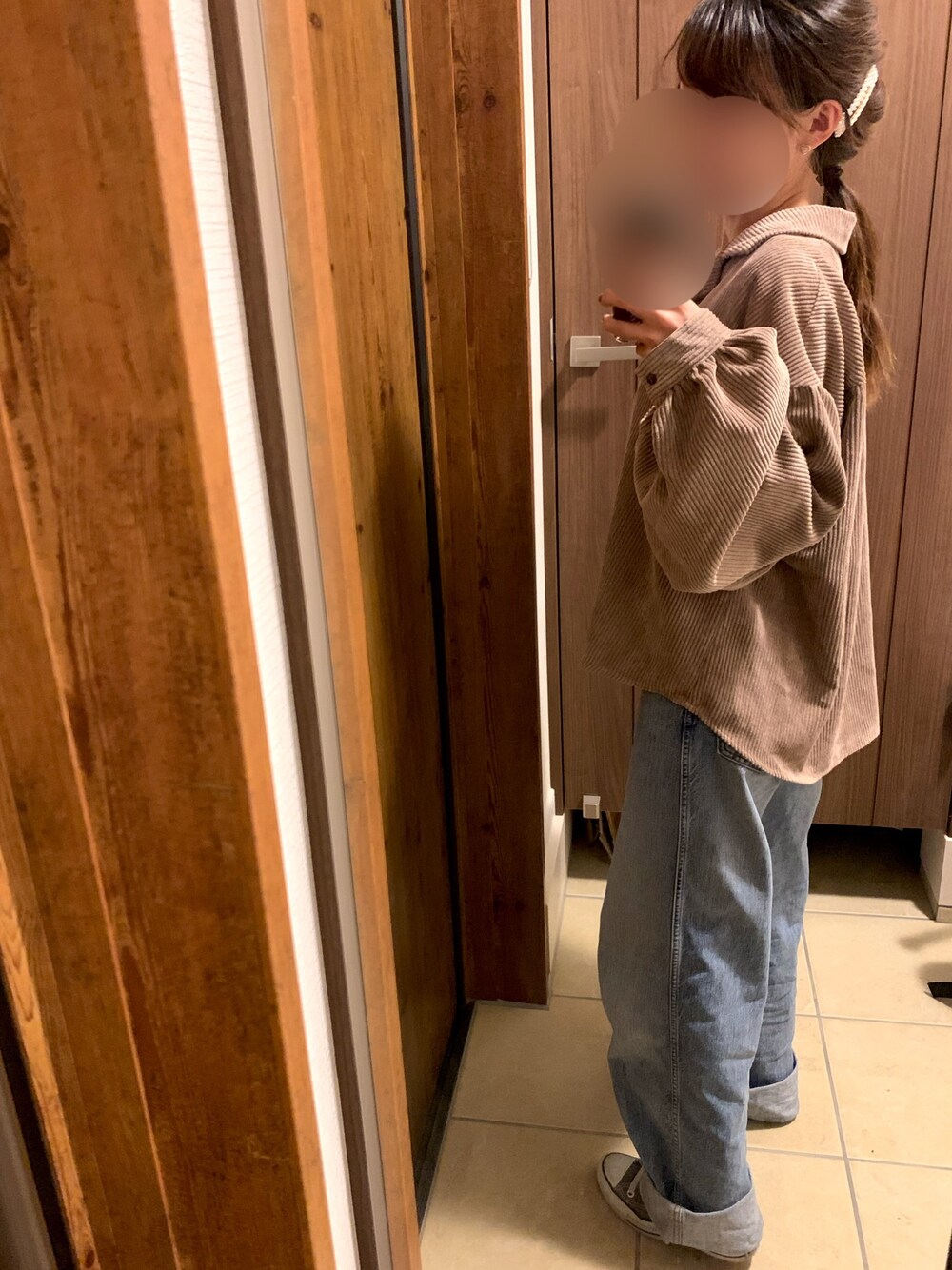 アプレのコーデュロイシャツのモカはなんとも言えない絶妙なカラーです◡̈ ユニクロの#ハイライズワイドストレートジーンズ は、みんなが持ってる定番ですね◡̈♡