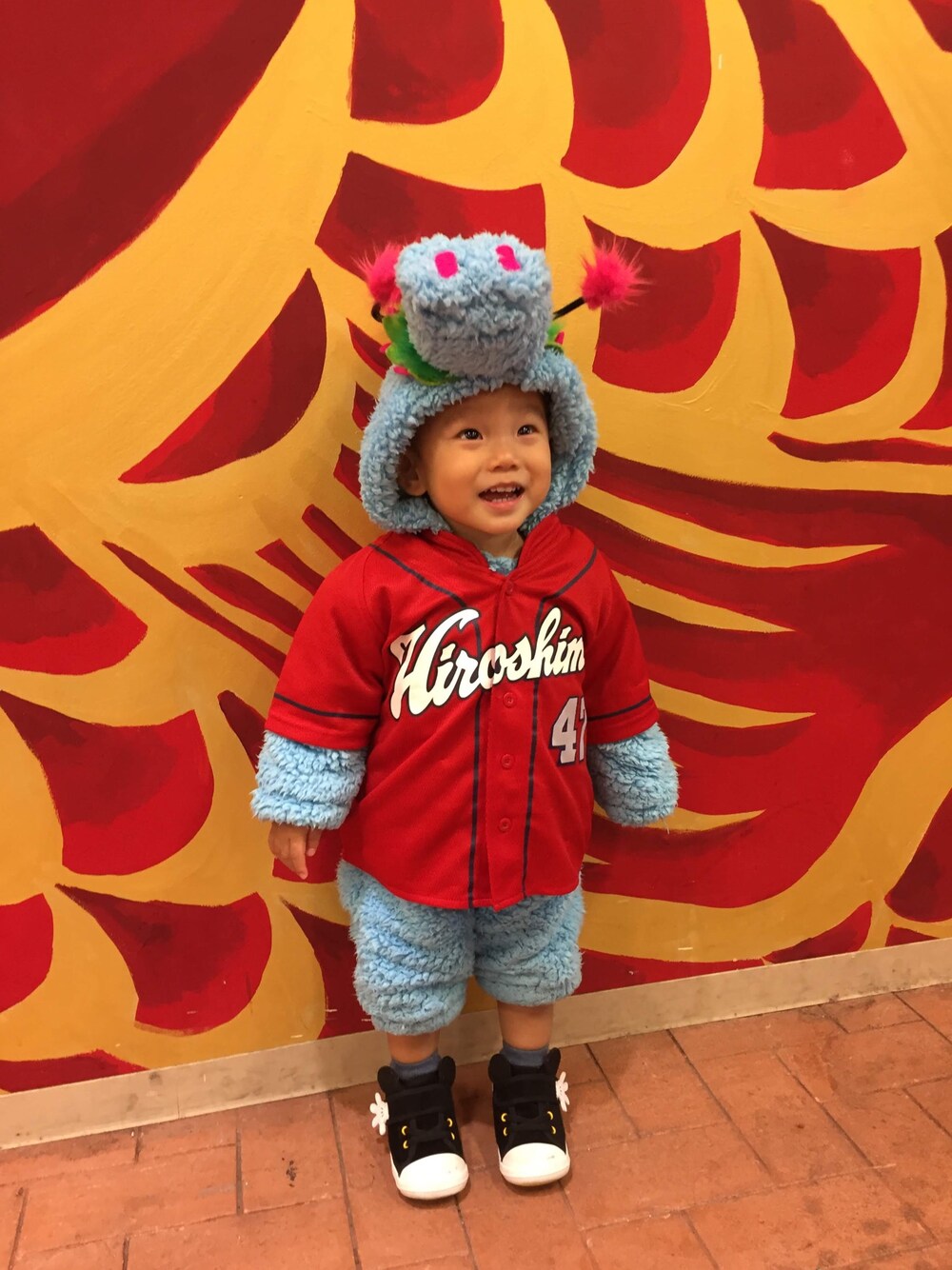 秋のカープ応援スタイル⚾️ スライリーの着ぐるみは作りました🦕