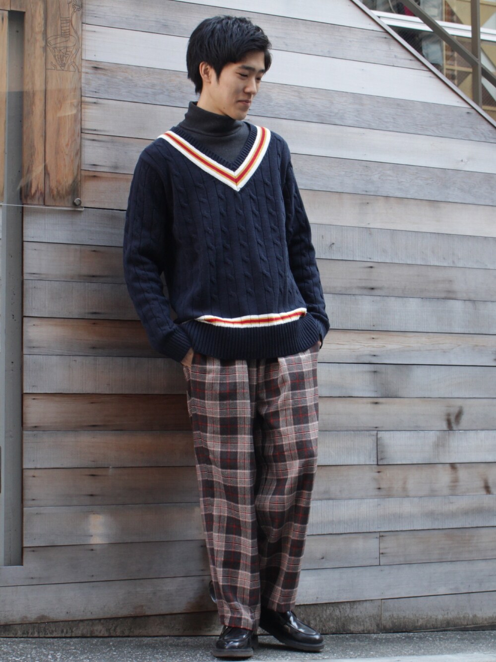 #cuirs_styling チルデンVネックニット / ¥8,800+ ストレッチタートルネックカットソー / ¥4,000+ オレンジグレンチェックワイドパンツ / ¥6,900+ 【Twitter】 @Cuirs_press 【Instagram】 @cuirs_official 〒150-0041 東京渋谷区神南1-13-3 ARK神南1F 11:00-20:00