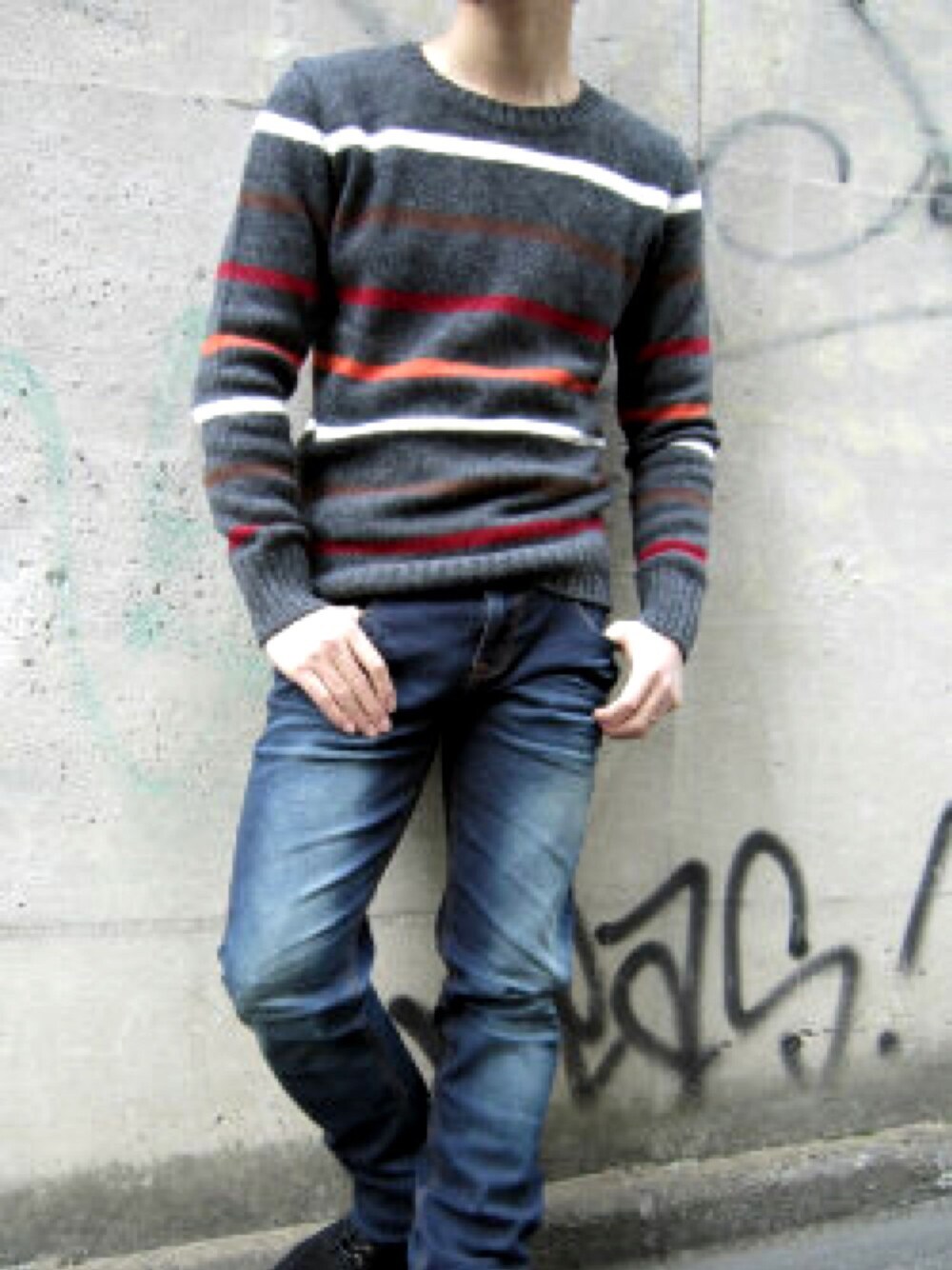 まだ肌寒い日には、ボーダーニットがオススメ!ボーダーデザインがアウターから見えるのが◎