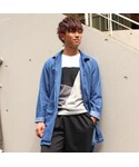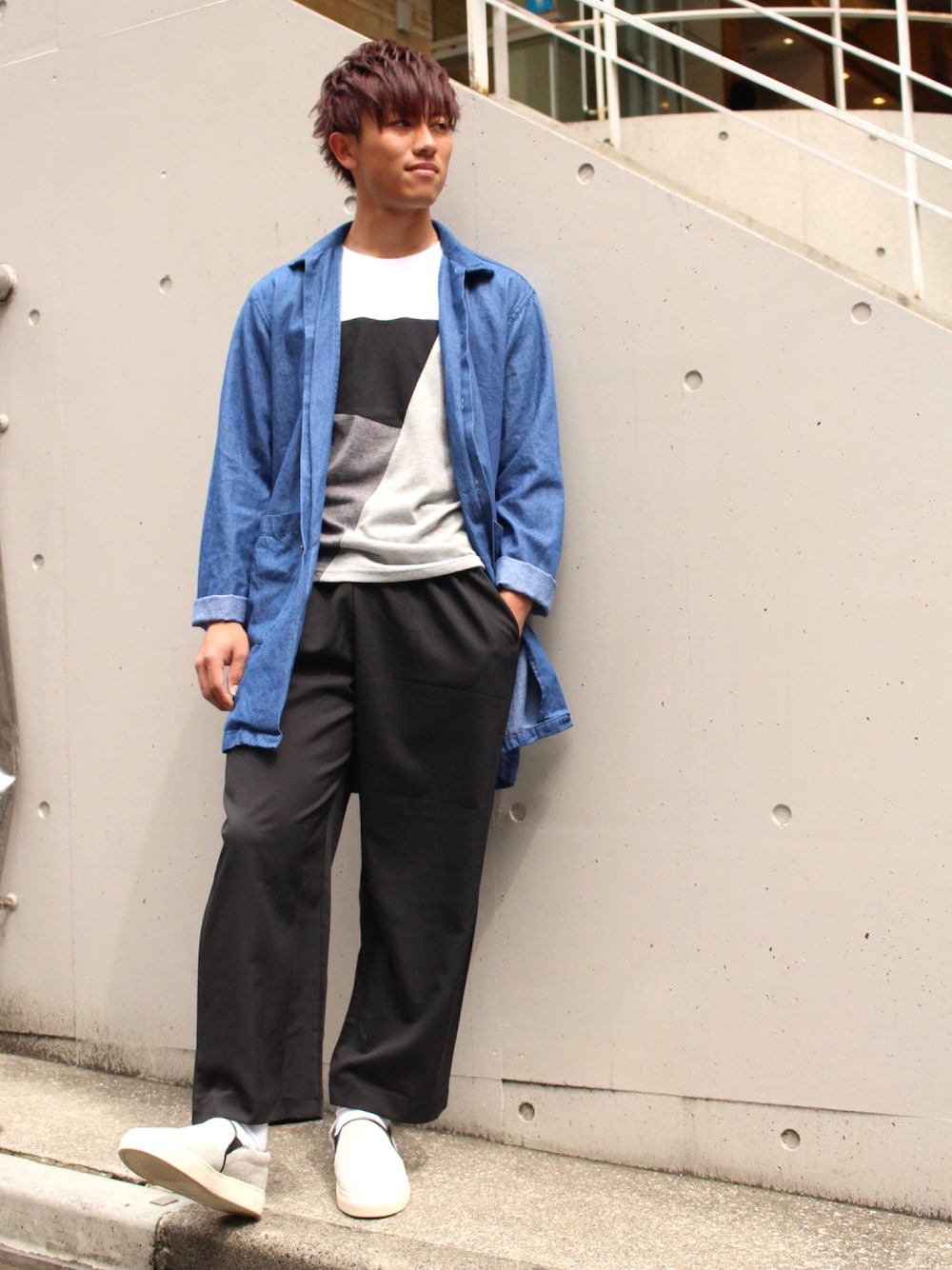 サラリと爽やかに着こなすショップコート春コーデ。ワイドパンツとの相性抜群で、軽やかなスタイルを確立。新学期コーデのひとつとしてオススメです✨ モデル:Cuirs専属モデル 清水雅也