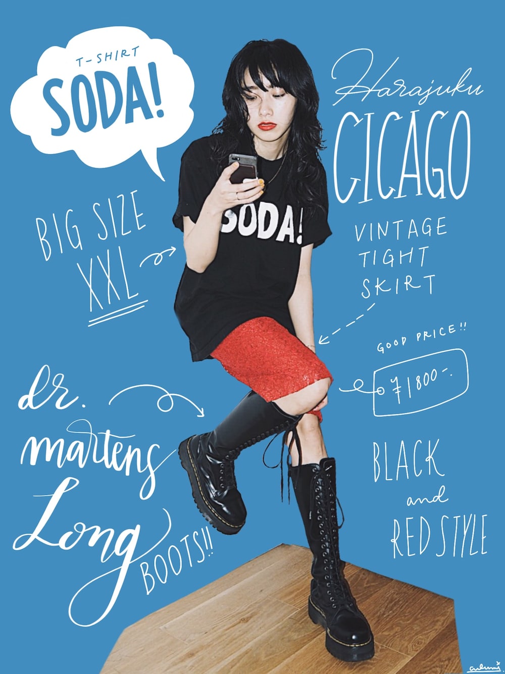 赤と黒でロックなテイストに。ハードなコーディネートでもレーススカートで女の子要素しっかりプラスです。 夏でもDr.Martens履き倒すぜ!って、ずっと思ってたんだけどさ、ぶっちゃけると今年はすっごくサンダルが履きたい(Dr.Martensごめん)(Dr.Martens大好きだよ)(足の指骨折したからさ)(指が出てる靴が楽なんだ) ▼背景について ibis paintというアプリを使用して文字を書いたりしています。詳しい描き方についてはこちら http://lineblog.me/culumi_nakada/archives/183883.html ▲▲▲▲▲▲▲▲▲▲▲▲▲▲▲▲▲▲▲▲▲▲
