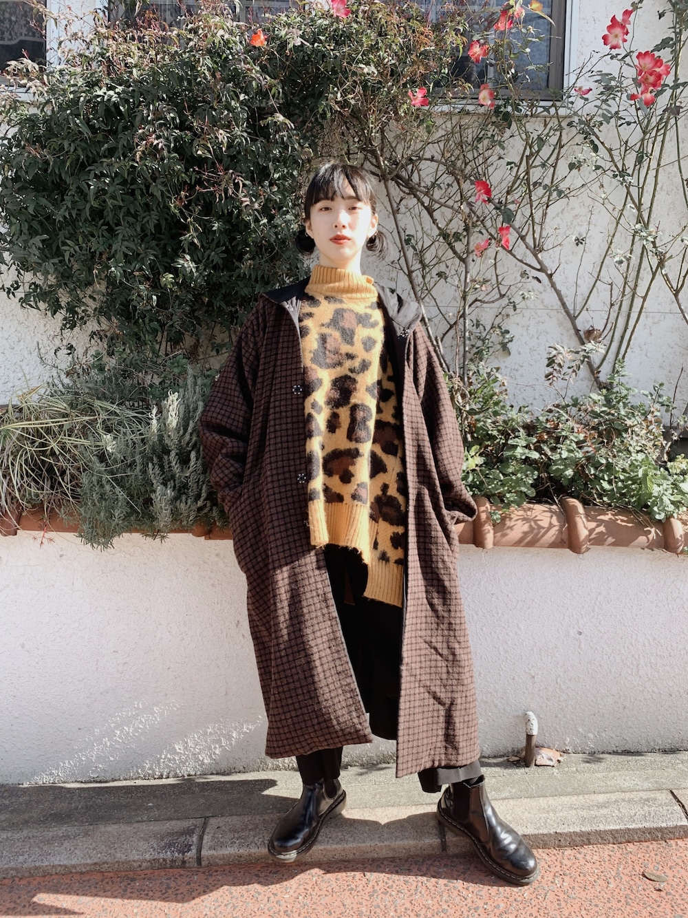 良い天気! レオパードの上に重ねてもしつこくならないチェック柄◎ 数ある靴の中でもこのDr.Martensがダントツで履いてる。だよね?