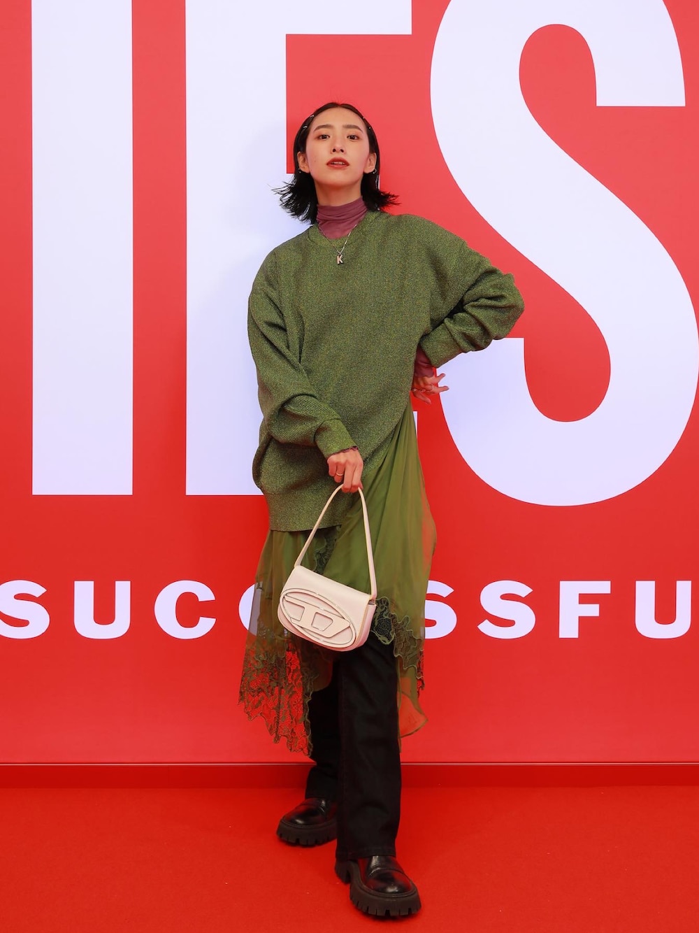self styling at DIESEL party この緑のニットドレスが本当に大好き!