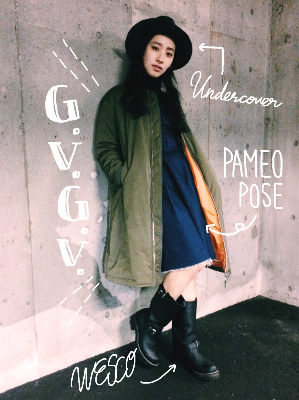 中田クルミのハット「UCP4H03」を使ったコーディネート