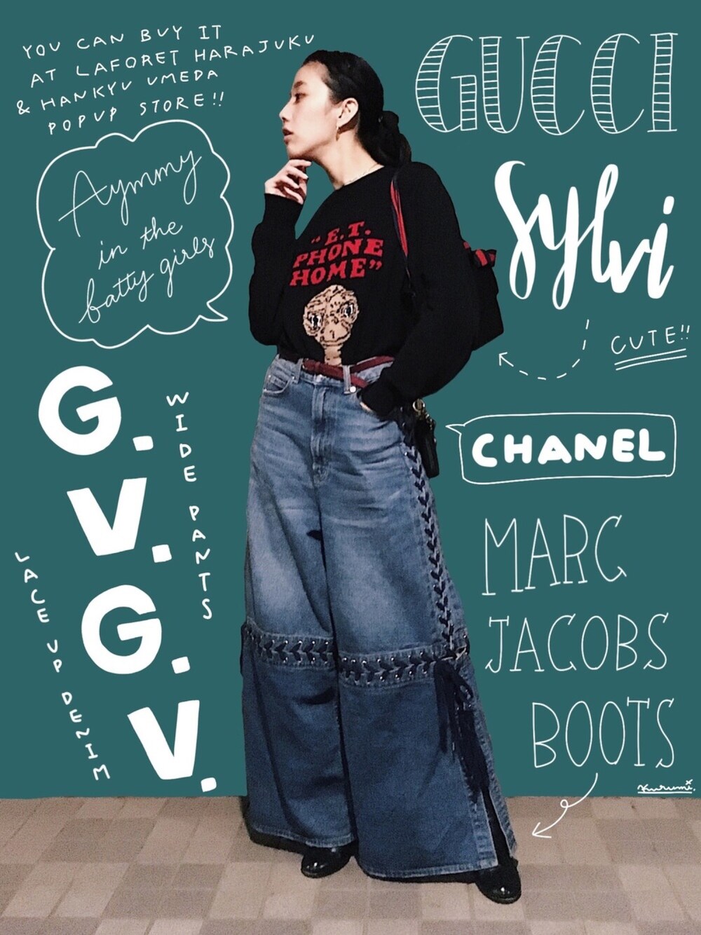 AymmyのE.T.ニット、特別に可愛いよね…!今ラフォーレ原宿のポップアップストアと阪急うめだで再販されているみたいです。買い逃した方は今がチャーンス!! このニットとGUCCのシルビの相性がばつぐん。ついつい合わせたくなっちゃいます…!カジュアルさと大人っぽさが同居してていい感じのコーデになるのですっ ▼背景について ibis paintというアプリを使用して文字を書いたりしています。 詳しい描き方についてはこちら http://lineblog.me/culumi_nakada/archives/183883.html ▲▲▲▲▲▲▲▲▲▲▲▲▲▲▲▲▲▲▲▲▲▲