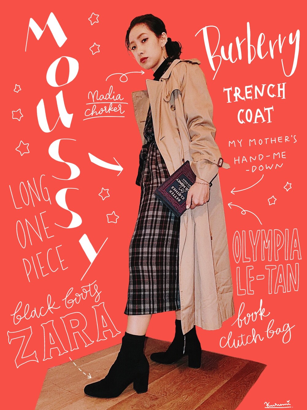 大人カジュアルなコーデ。ちょっぴりオーバーサイズのトレンチコートがメインです。 moussyのワンピースは秋服ですが七分袖な上に素材感も軽めなので、春先に着てもいいかな〜〜と思って合わせました。同色系のOLYMPIA LE-TANのブッククラッチを持って少しパーティー仕様に。 WEARのランキングでついに念願の1位を獲得することができました…!! 本当に本当に、ありがとうございます!! ▼背景について ibis paintというアプリを使用して文字を書いたりしています。詳しい描き方についてはこちら http://lineblog.me/culumi_nakada/archives/183883.html ▲▲▲▲▲▲▲▲▲▲▲▲▲▲▲▲▲▲▲▲▲▲